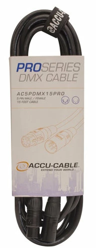 The American DJ AC5PDMX15PRO is a 15 ft long Pro Series 5-pin DMX cable that is designed for use in linking lighting effects to control them in DMX or Primary/Secondary modes. Thanks to its heavy-duty connectors and rugged PVC-jacketed cable, this Pro Series DMX cable is ideal for production companies that require cables that are reliable enough for day-in-day-out use.