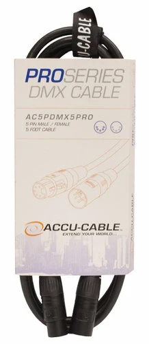 The American DJ AC5PDMX5PRO is a 5 ft long Pro Series 5-pin DMX cable that is designed for use in linking lighting effects to control them in DMX or Primary/Secondary modes. Thanks to its heavy-duty connectors and rugged PVC-jacketed cable, this Pro Series DMX cable is ideal for production companies that require cables that are reliable enough for day-in-day-out use.