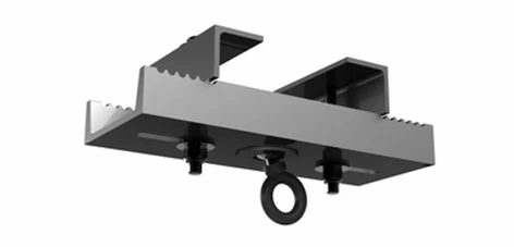 Standard, pre-engineered channel style beam clamps anchor to a building’s beam structure to provide a safe and predictable method of rigging grids, clusters, arrays and other objects. The BC7-12-GE Gimbaled Style beam clamp from Allen Products is unique in that it offers a gimballed swivel eye that accommodates up to 20° of off-axis side loading in any direction without losing any of its working load. The gimbaled feature is especially predictable when bridling suspended objects from wire rope, rigging chain, span sets, etc. The body of the clamp mounts flush underneath the building’s I-beams and side clamps adjust to accommodate beam flange widths between 7″ and 12″.