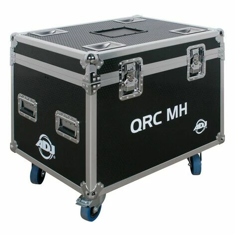 The QRC-MH is a sturdy wheeled flight case for transporting four of the ADJ Focus Spot 5Z, Focus Spot 4Z, Focus Spot 4Z Pearl, Focus Spot Three Z, Focus Spot Three Z Pearl, Focus Beam LED or Vizi Beam RX One. Four divided compartments protect the lighting fixtures and a separate central compartment is provided for cables, clamps and other accessories. The case has a top-loading design where fixtures are lowered in headfirst and hang from their base to ensure maximum protection.