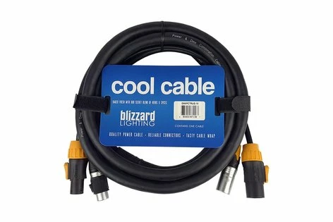 The DMXPCTRUE 10, from Blizzard Lighting’s Cool Cable Powercon True1 and DMX Combo Cables, is a 10′ IP65 rated powercon true1 and 3-pin DMX combo cable. Replace any set of individual powercon true1 compatible power and 3-pin DMX extensions with a single neatly wrapped outdoor lighting cable. The power cable features heavy-duty 14AWG wire, and is fitted with locking powercon compatible input/output connectors. While the DMX meets the USITT standards for DMX512 cable specifications with 120 ohm impedance, low capacitance, and foil and braid shields, and have IP65 rated 3-pin XLR connectors.