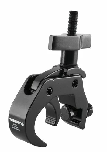 The TRUSST® CTC-50G is a black anodized load rated heavy duty C-clamp made from extruded aluminum with a load rating of 550 lbs (250 kg). The wrap around style won’t scratch or damage truss and the captive T-handle is oversized to ease installation and tightening of the clamp without the use of tools. Built with reliability, safety, and durability in mind, the CTC-50G can handle heavier loads and is made for hanging fixtures from truss or 2″ pipes, including the TRUSST CT290 series and other major brands of trussing.