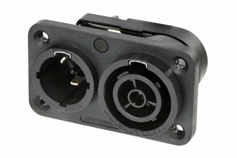 From Neutrik, the powercon TRUE1 TOP is a locking male 16 A true mains connector for outdoor applications. Replace appliance couplers wherever a very rugged solution in combination with a locking device is needed. Guarantee a safe power connection with featured the breaking capacity (CBC) allowing it can be connected or disconnected under load or live.