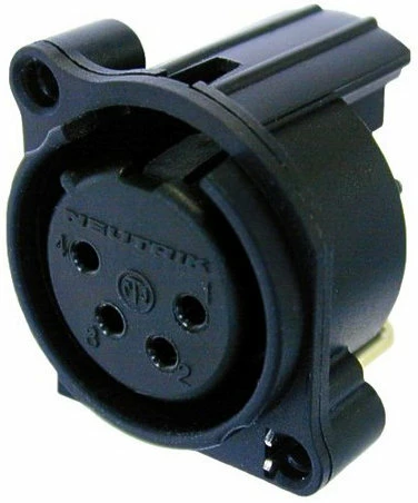 Neutrik’s NC4FAH-0 is an XLR PCB mount panel connector with a round plastic body that has the smallest size and highest packing density (23mm between centres). Features fork-type contacts with hard gold plating and polished contact areas. UL recognized component.