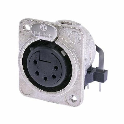Neutrik’s NC5FDM3-H is a universal D-size, 5-pin XLR-F panel mount connector. This 5-pole XLR female receptacle features silver contacts, M3 mounting holes, and comes in a nickel housing.