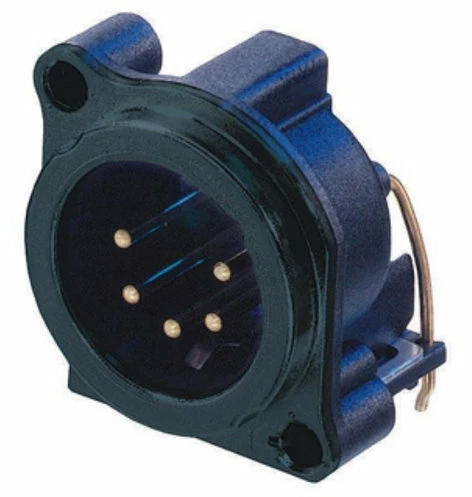 The Neutrik NC5MBH-B is a 5-pole male XLR receptacle, grounding: separate ground contact to mating connector shell and front panel, horizontal PCB mount, black chrome shell